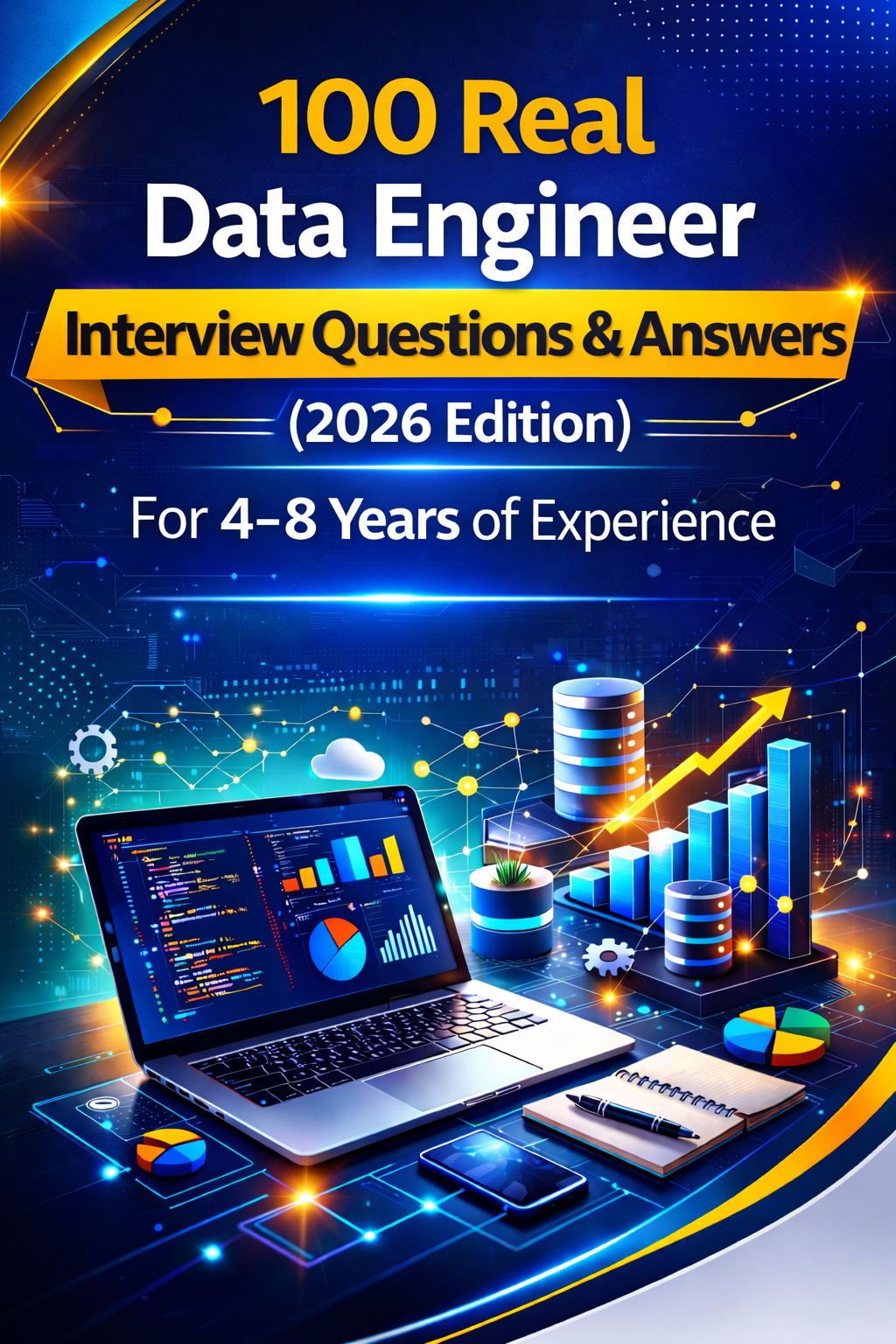 “100 Real Data Engineer Interview Questions & Answers (2026 Edition)” is the ultimate preparation guide for data professionals with 4–8 years of experience who want to master real-world, scenario-based questions asked in top tech interviews.