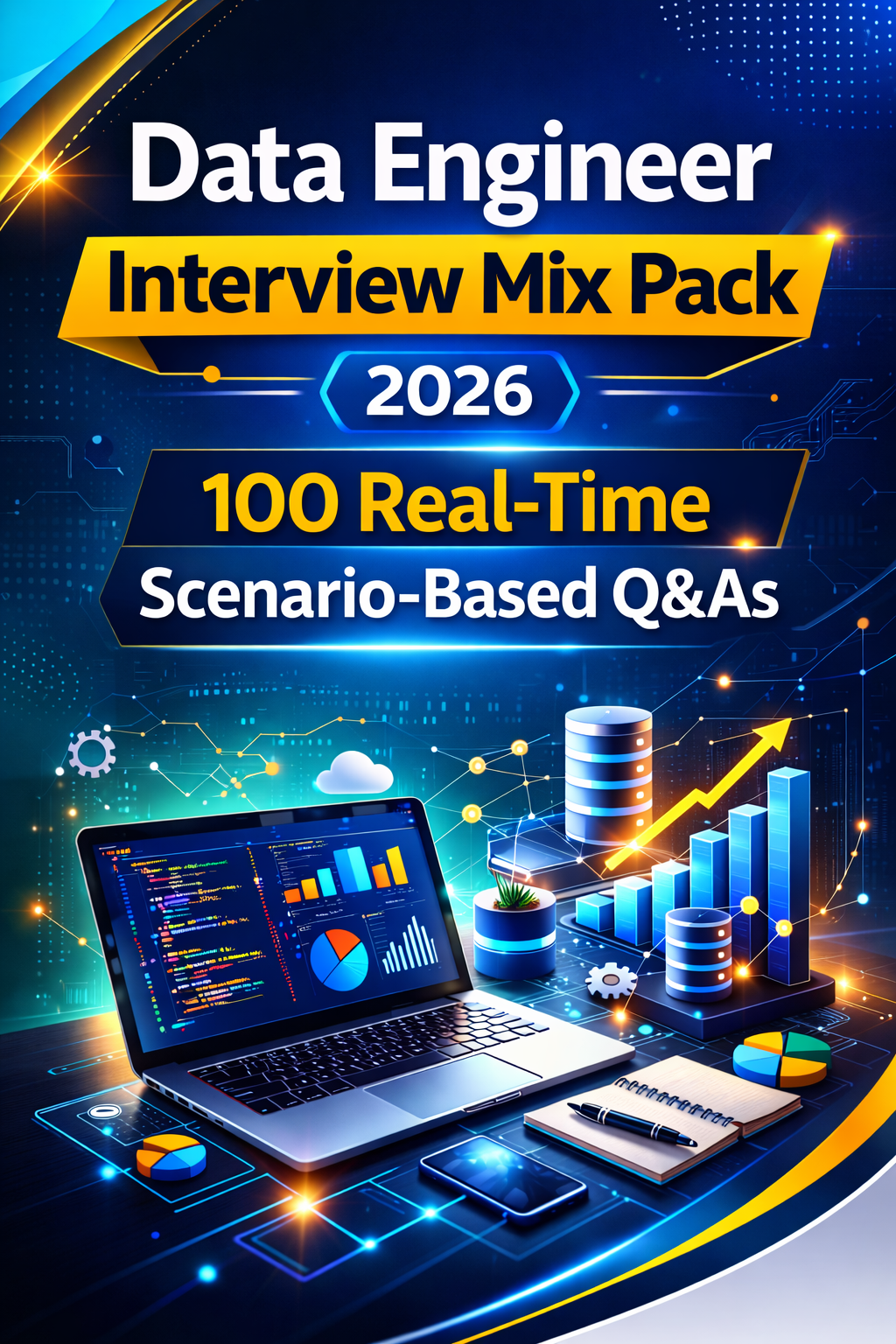 The Data Engineer Interview Mix Pack 2026 is your ultimate prep guide, packed with 100 real-time scenario-based questions and answers curated from the latest interview patterns across top tech companies.