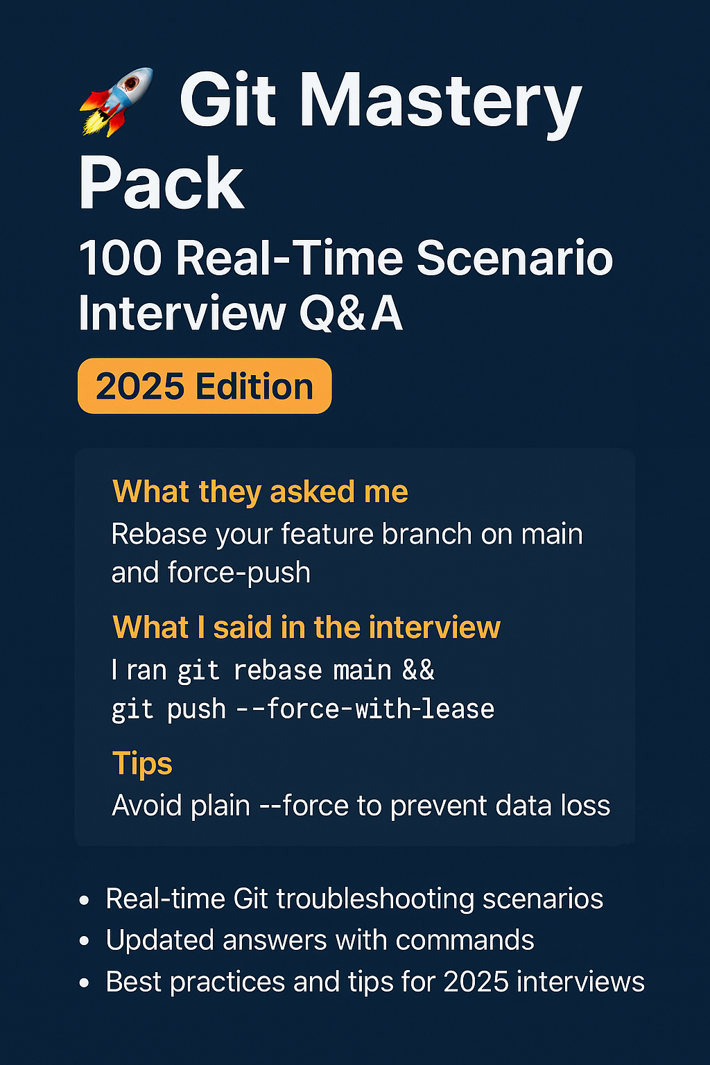 Whether you are preparing for developer, DevOps, or version control engineer interviews, this pack will give you the confidence to answer scenario-based questions and demonstrate mastery in Git during real projects.