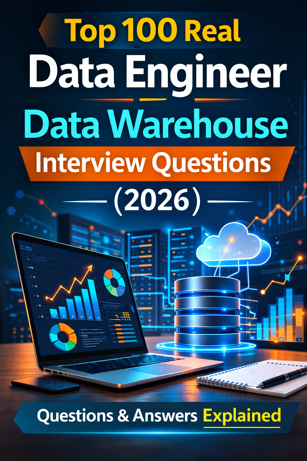 Top 100 Data Warehouse Interview Q&A – Real-Time Scenarios & Answers (2026 Edition, 3+ YOE) is your complete interview preparation handbook designed for data professionals with 3+ years of experience + Freshers.